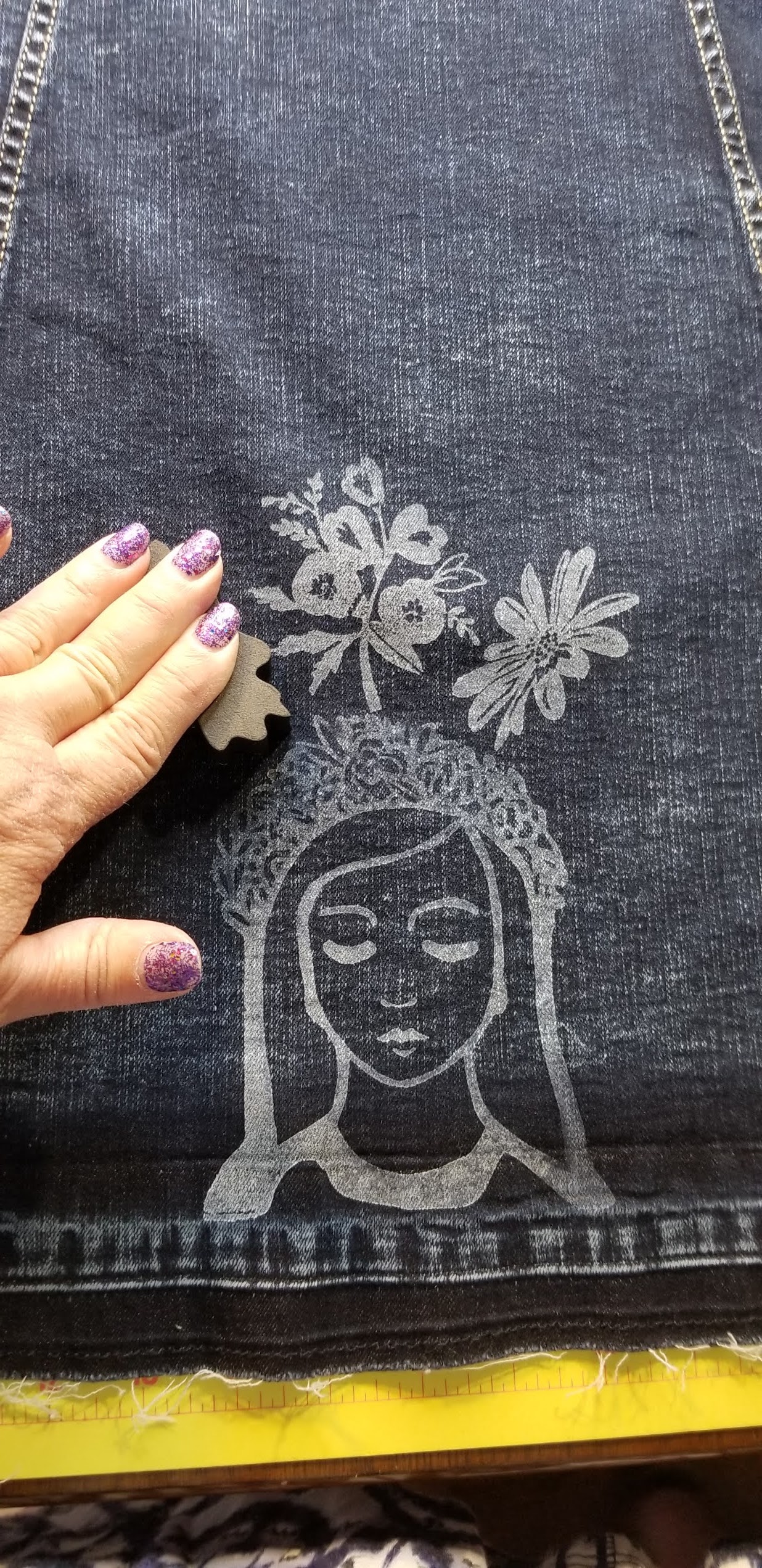 I stamped the images on my jacket using the stamp buddy and paint mixture.
