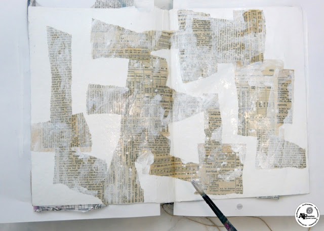 As I was thinking about what to create for my tutorial, I remembered that ICAD. I knew this was the perfect time to explore (or attempt to recreate!) my accidental card. So, I opened my Dina Wakley Media journal, covered an entire two-page spread with gesso and began.