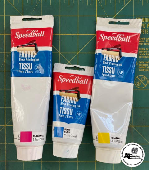 In today’s blog, I want to show you how I have used some of my new designs in different ways. I pulled out my Speedball Fabric Block Printing inks in Magenta, Yellow, & Blue for this project.