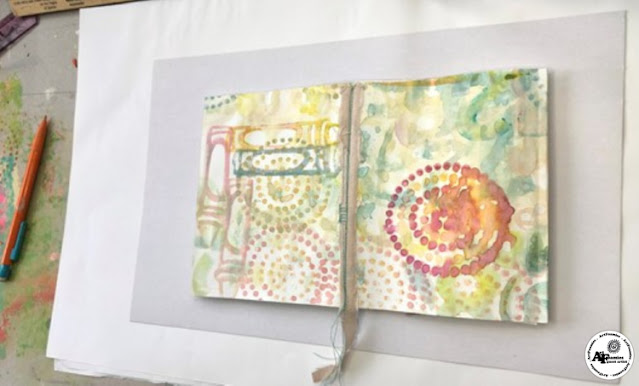 1. Rub ink pad on palette paper and then dilute the color by spritzng with water and on ArtFoamies before loading foam stamp with ink.