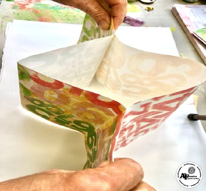 I patterned the whole cover with my ArtFoamies , I used Gelly plate just to try new ways of stamping . If you don’t have gel plate, you can base your cover surface with acrylics then enjoy your favorite ArtFoamies to customize it.